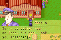 Este evento só ocorre se você estiver casado. Deixe sua fazenda depois das 19:00 e você verá Harris esperando lá fora por você. Ele veio para lhe pedir alguns conselhos sobre um problema que ele tem. Se você concorda em ouvir, ele vai falar sobre como ele está apaixonado por Aja.